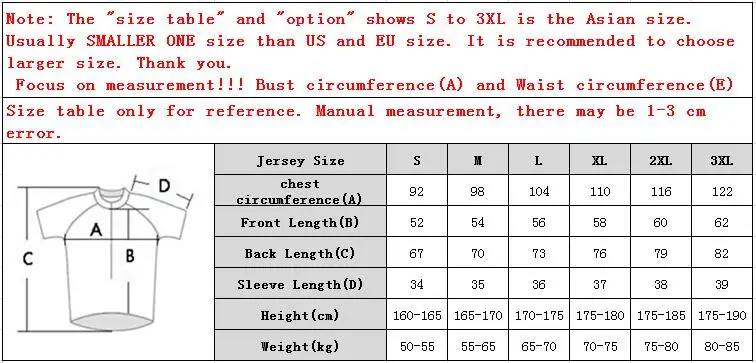 Our Cycling Jersey is Asian Size Smaller than European Size, So You Need to Choose One Much Bigger Size.
