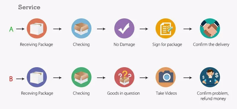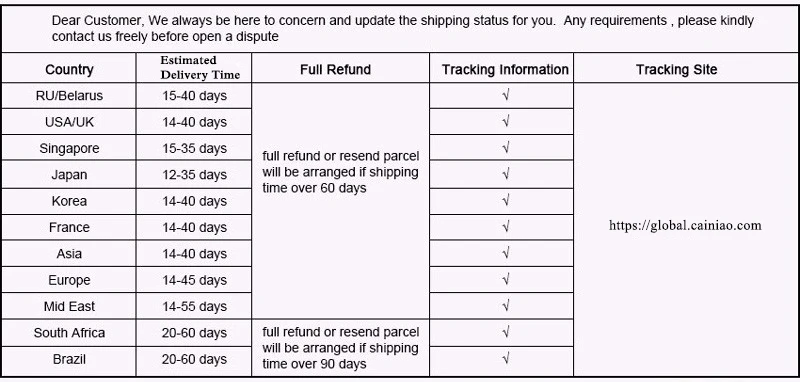 If the product you receive is not as described or low quality, the seller promises that you may return it before order completion (when you click "Confirm Order Received" or exceed confirmation timeframe) and receive a full refund. The return shipping fee will be paid by you. Or, you can choose to keep the product and agree the refund amount directly with the seller.N.B.: If the seller provides the "Longer Protection" service on this product, you may ask for refund up to 15 days after order completion.