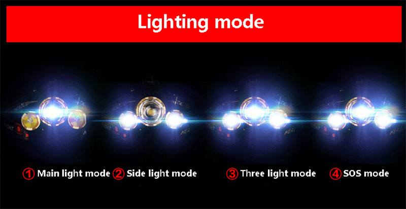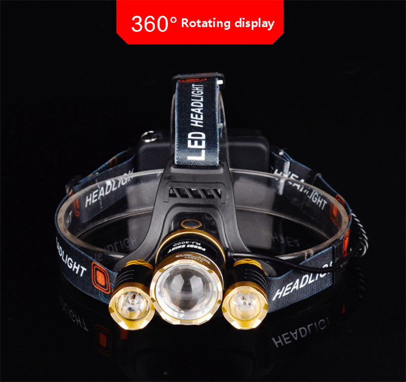 1. Lamp beads: Imported CREE-T6 lamp beads, bilateral two auxiliary lights T6, the maximum brightness of 5,000 lumens, life 100,000 hours; 2. Angle adjustment: head according to their own needs and adjust the angle up and down, simple operation, easy to use, convenient task lighting; 3. Aluminum Light Cup: Aluminum light cup high-quality, high-precision polishing technology, floodlight more perfect; 4. Central Switch: waterproof rubber switch, soft material, touch transform lighting mode; 5. headlights with high-: Flexible light strip designed to adjust the size of the right size according to their head; 6. Red Alert: battery compartment on the back with LED red warning lights designed to move, go out to use more secure; 7.DC charging hole: head charging hole, connected to the power supply only fast charge, longer battery life; 8. The battery compartment Tail: Tail rechargeable battery compartment design can be installed section 1 or 2 18650 batteries, can be used. Accessories include :( No battery mode) 1 × LED headlamp Accessories include :( Battery mode) 1 × LED headlamp 2 × 18650 rechargeable battery 1 × Home Chargers 1 × Car Charger