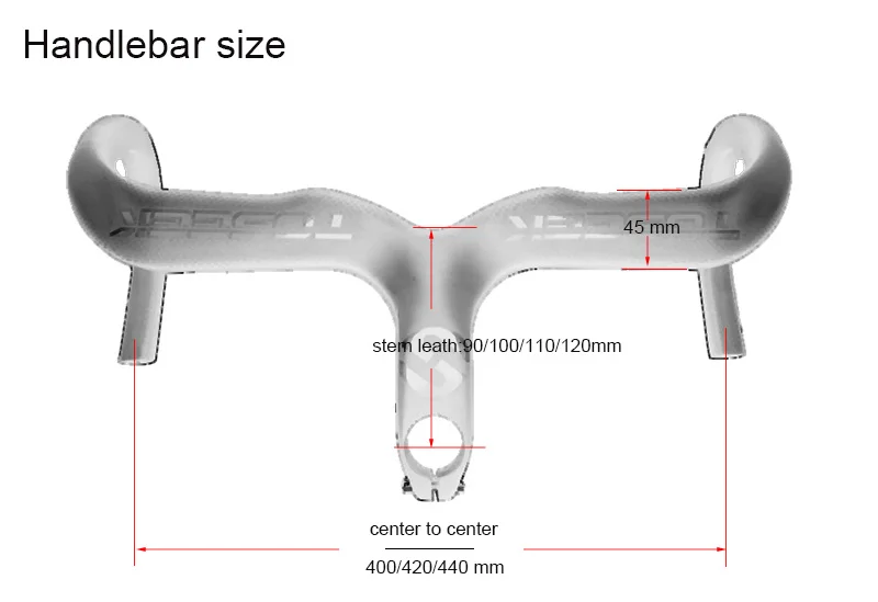 3K carbon weave Material:Full 3K Carbon Handlebar Length 400/420/440mm(Grip Center TO Grip Center) Stem Length: 90/100/110/120mm, Angle:10 Degrees, Diameter:28.6mm, Stem Clamps:28.6mm Color: red ,black /matt Weight: 380g(size :420*100mm) Bike Type: Road Bike 2 year quality guarantee