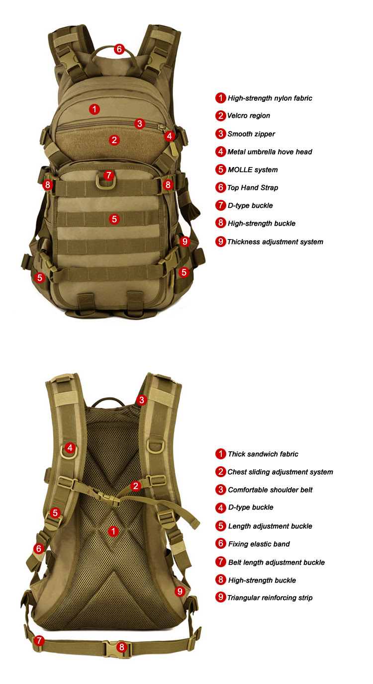 | Item Name: Protector Plus Hunting Backpack,Tactical Backpack Material: Durable Nylon Fabric Lining:Upscale Mercerized Cotton Dimension:Length:32cm,Width:17cm,Height:45cm Weight:1350g MOLLE expanding function Wide Straps Well Ventilated Adjustable Waist Strap Note 1: There might be slightly difference in color, because of the computer monitor settings. Note 2: With the difference in the measurement method, please allow 1-3 cm in size deviation. Note 3: New bag just come out from factory, therefore it may be a little smell . |